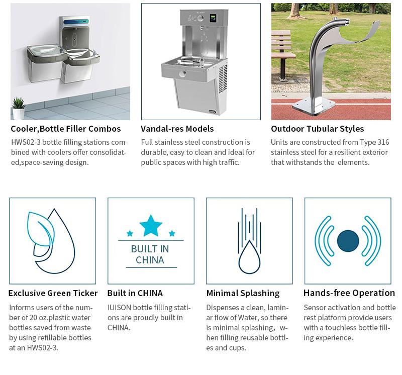 Bottle Filler features sanitary no-touch sensor activation with automatic 15-second shut-off timer